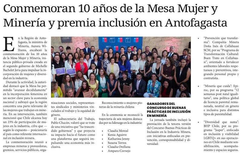 En Antofagasta ministra Williams conmemora los 10 años de la Mesa Mujer Minería - (nuevaminería online)