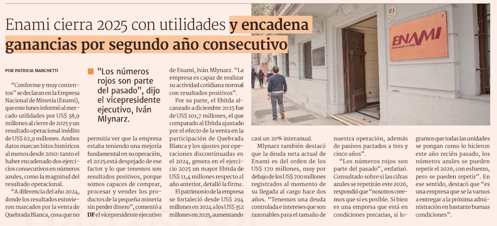 Enami consolida utilidades y proyecta estabilidad para la pequeña minería - (El Diario de Atacama)
