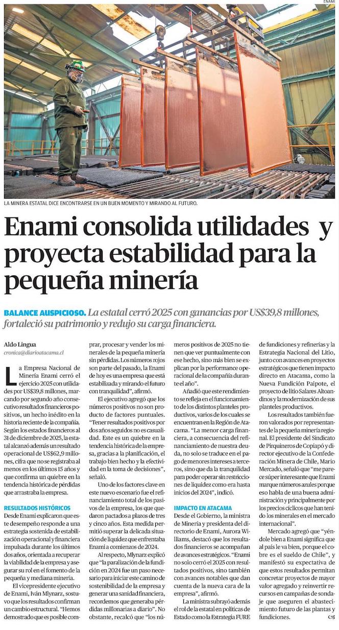 Enami cierra 2025 con utilidades y encadena ganancias por segundo año consecutivo - (Diario Financiero)