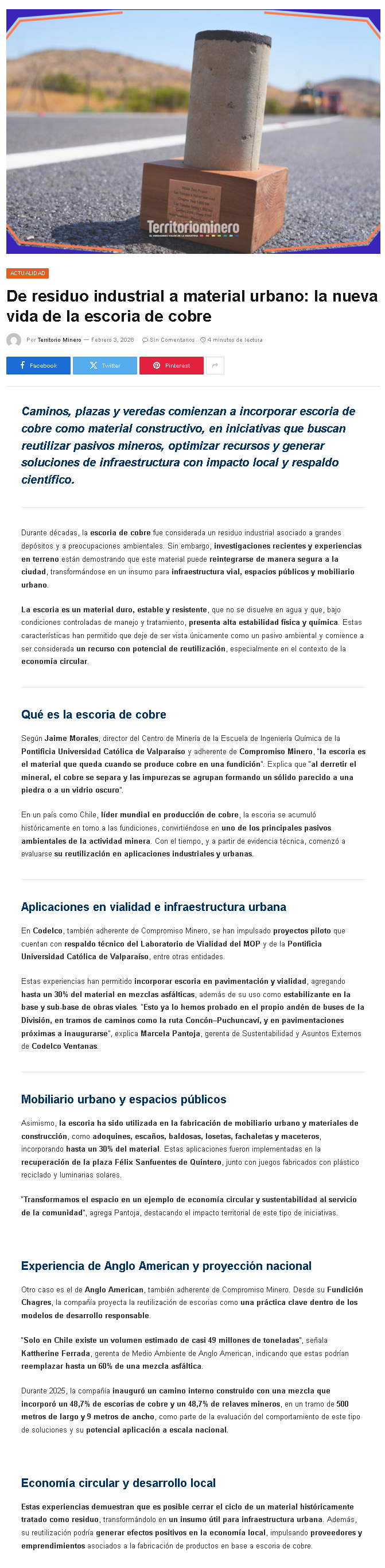 De residuo industrial a material urbano: la nueva vida de la escoria de cobre - (regionesnoticias.cl)
