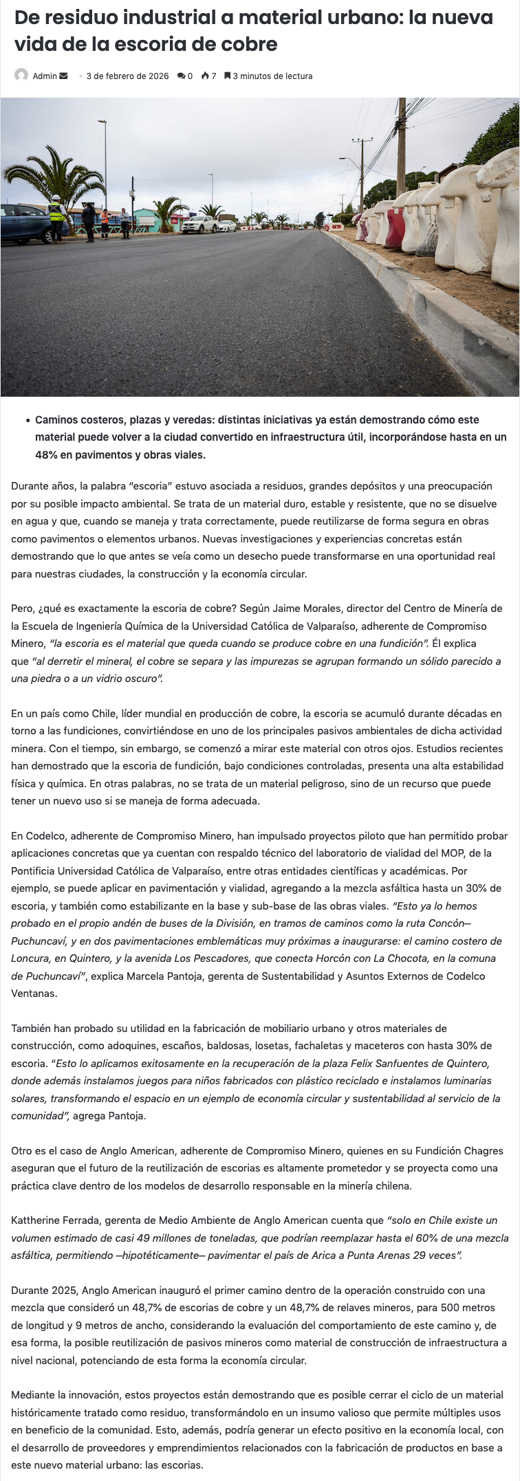 De residuo industrial a material urbano: La nueva vida de la escoria de cobre - (chilemineria.cl)