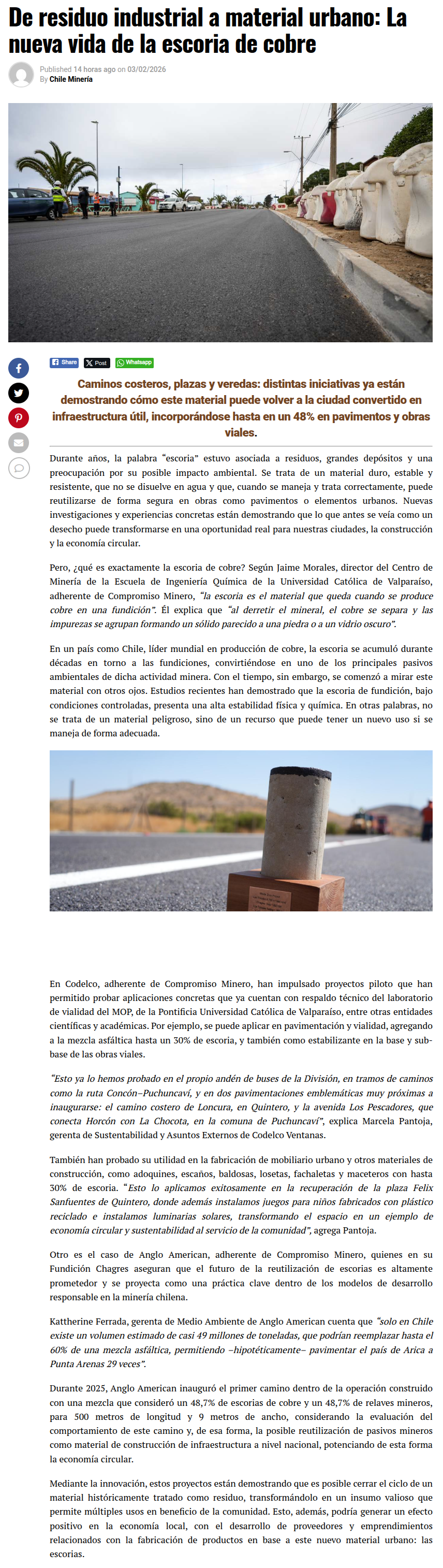 La nueva vida de la escoria de cobre: de residuo industrial a material urbano - (revistacrisol.cl)