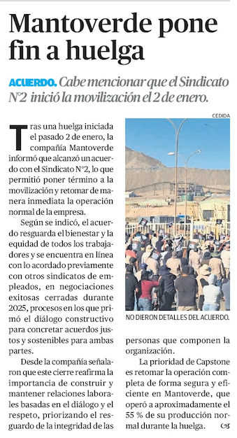 Sindicato 2 de Mina Mantoverde aprueba nueva oferta en votación, pero emergen cuestionamientos por rapidez del cierre del proceso - (El Chañarcillo)