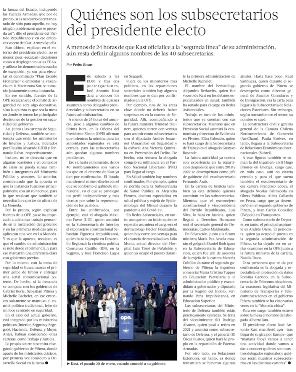 Presidente electo replicaría modelo del gabinete en subsecretarios, con alta presencia de independientes - (El Mercurio de Santiago)