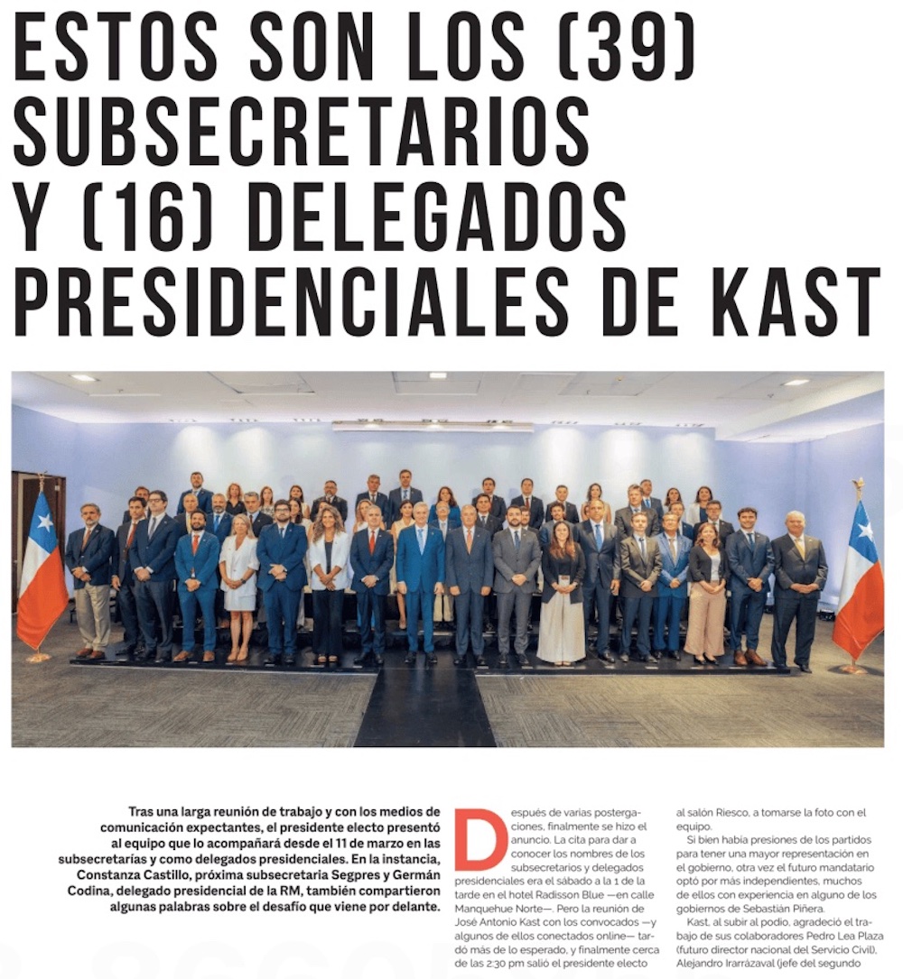 Figuras independientes y de Chile Vamos predominan en subsecretarías del gobierno de Kast - (El Mercurio de Santiago)