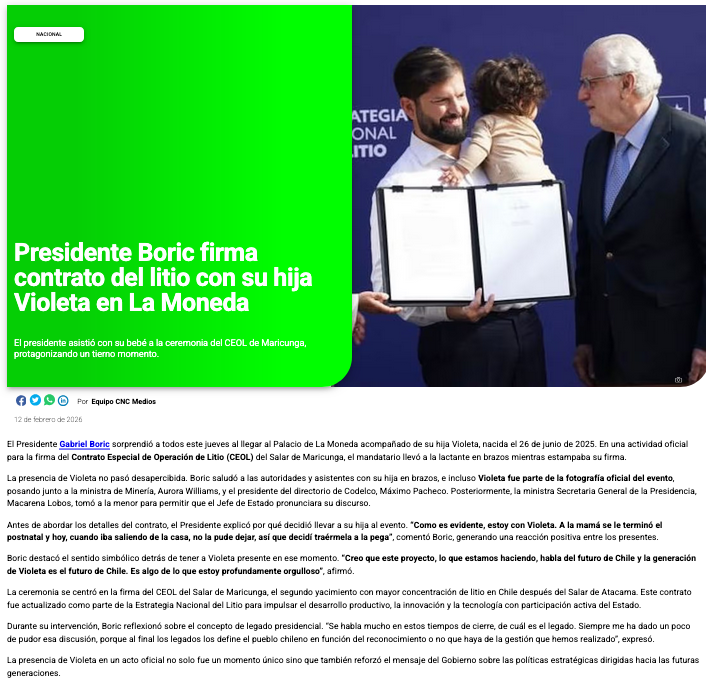 Gobierno firma nuevo contrato de operación de litio del salar de Maricunga - (Pulso)