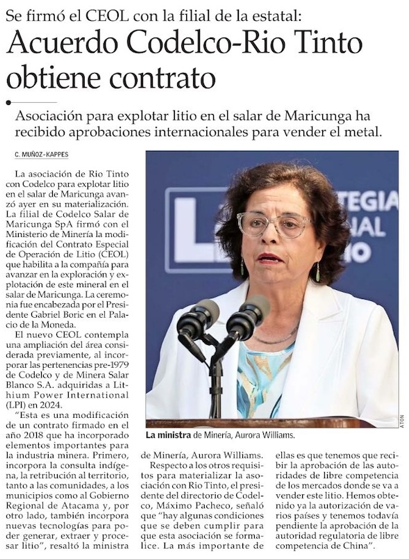 Gobierno firma nuevo contrato de operación de litio del salar de Maricunga - (Pulso)