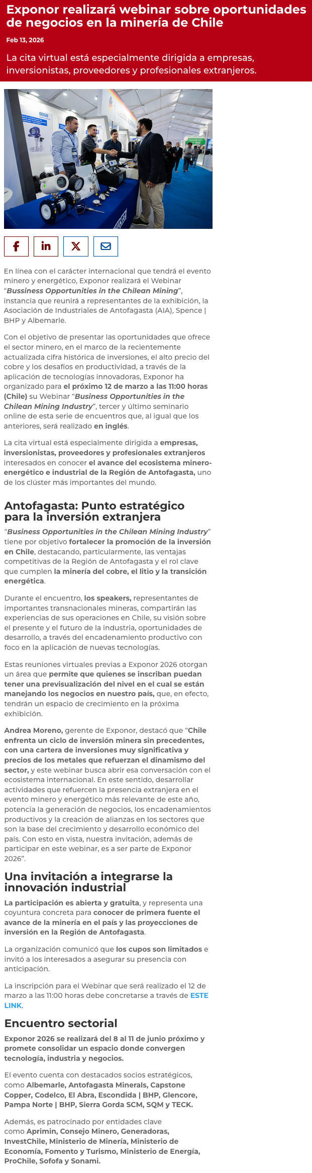 3° WEBINAR – EXPONOR 2026: Plataforma global de negocios para industrias claves - (redimin)