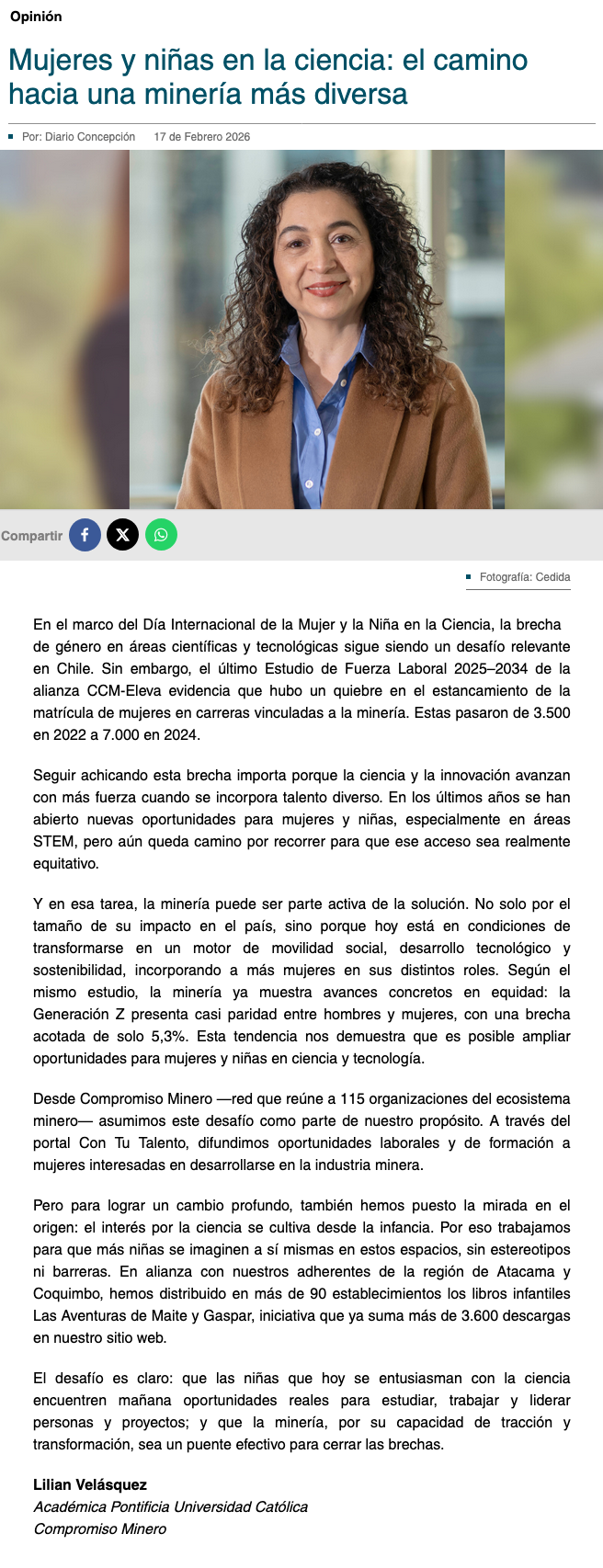 Mujeres y niñas en la ciencia: el camino hacia una minería más diversa - (Diario Concepción)
