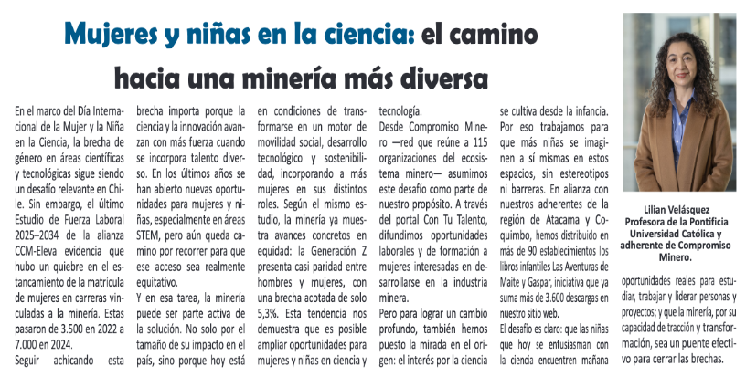 Mujeres y niñas en la ciencia: el camino hacia una minería más diversa - (El Longino de Alto Hospicio)