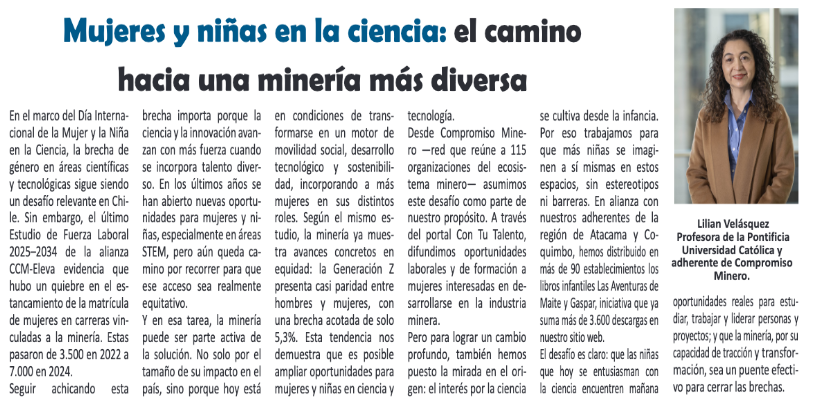 Mujeres y niñas en la ciencia: el camino hacia una minería más diversa - (El Longino de Iquique)