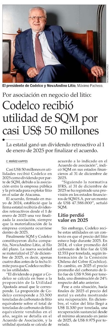 SQM provisionó casi US$ 50 millones para pagar dividendo extraordinario a Codelco - (Pulso)