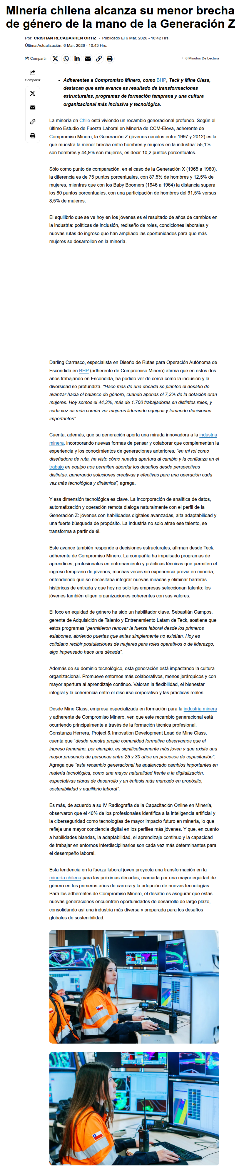 Generación Z impulsa la menor brecha de género registrada en la minería chilena - (mineriayfuturo.cl)