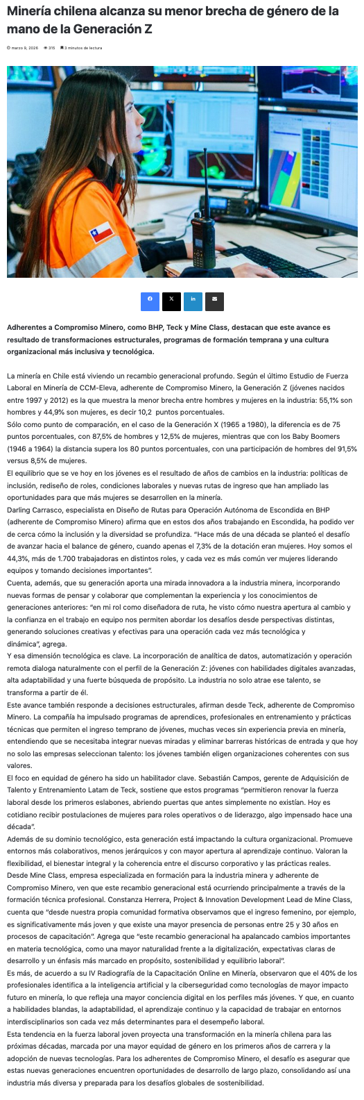 Minería chilena alcanza su menor brecha de género de la mano de la Generación Z - (Nostálgica Online)