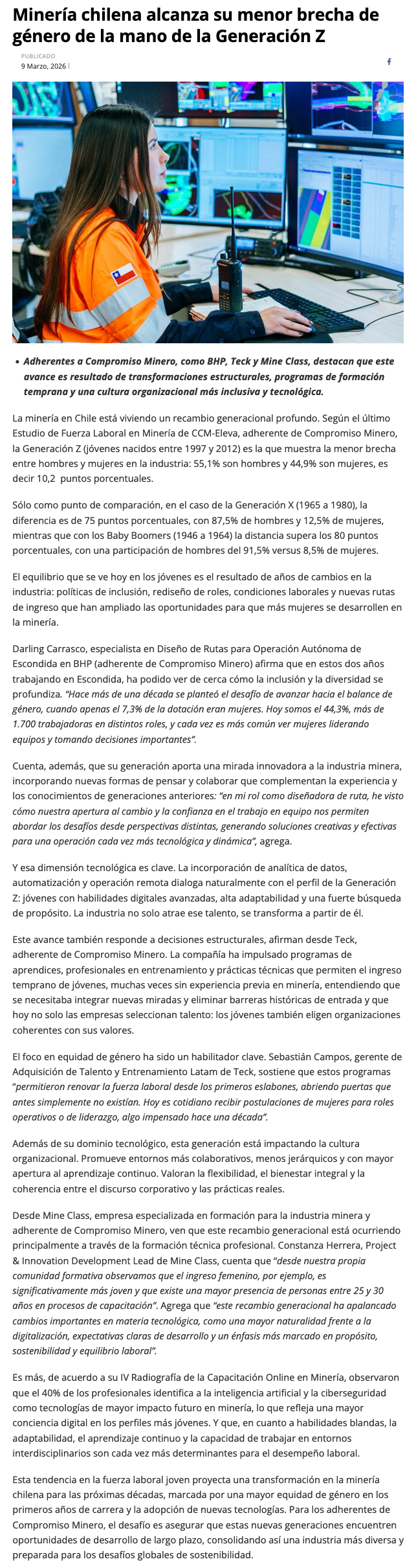 Minería chilena alcanza su menor brecha de género de la mano de la Generación Z - (Maray Online)