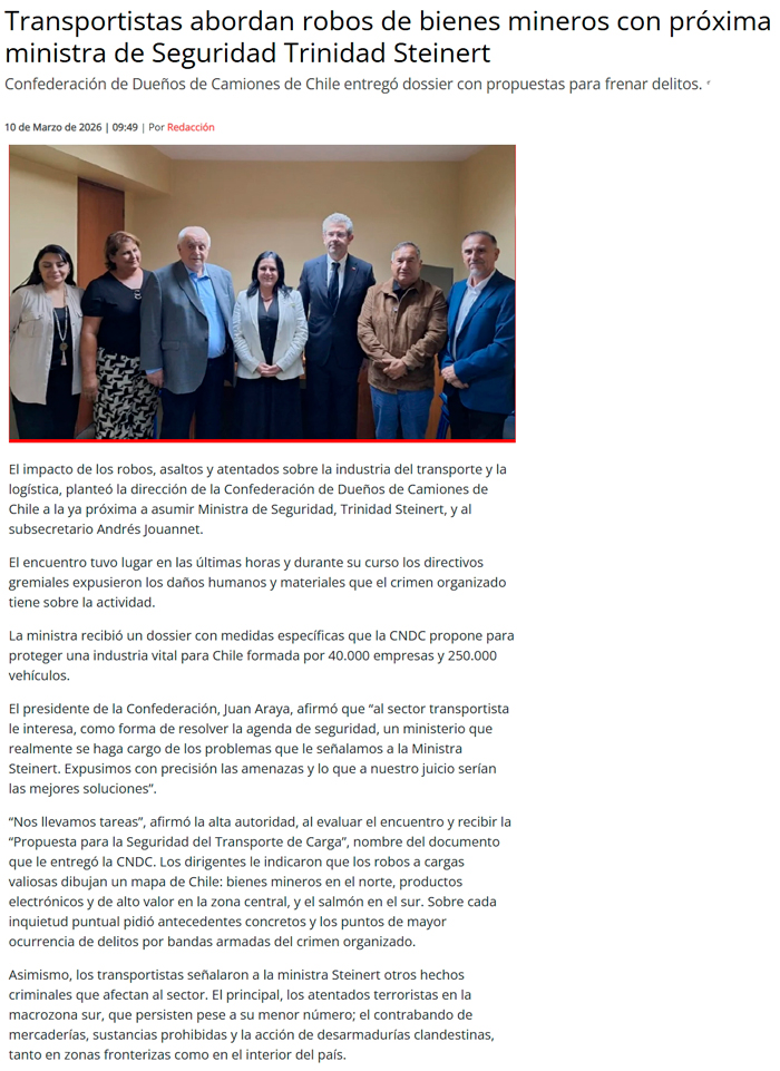 Transportistas abordan robos de bienes mineros con ministra de Seguridad - (El Mercurio de Calama)