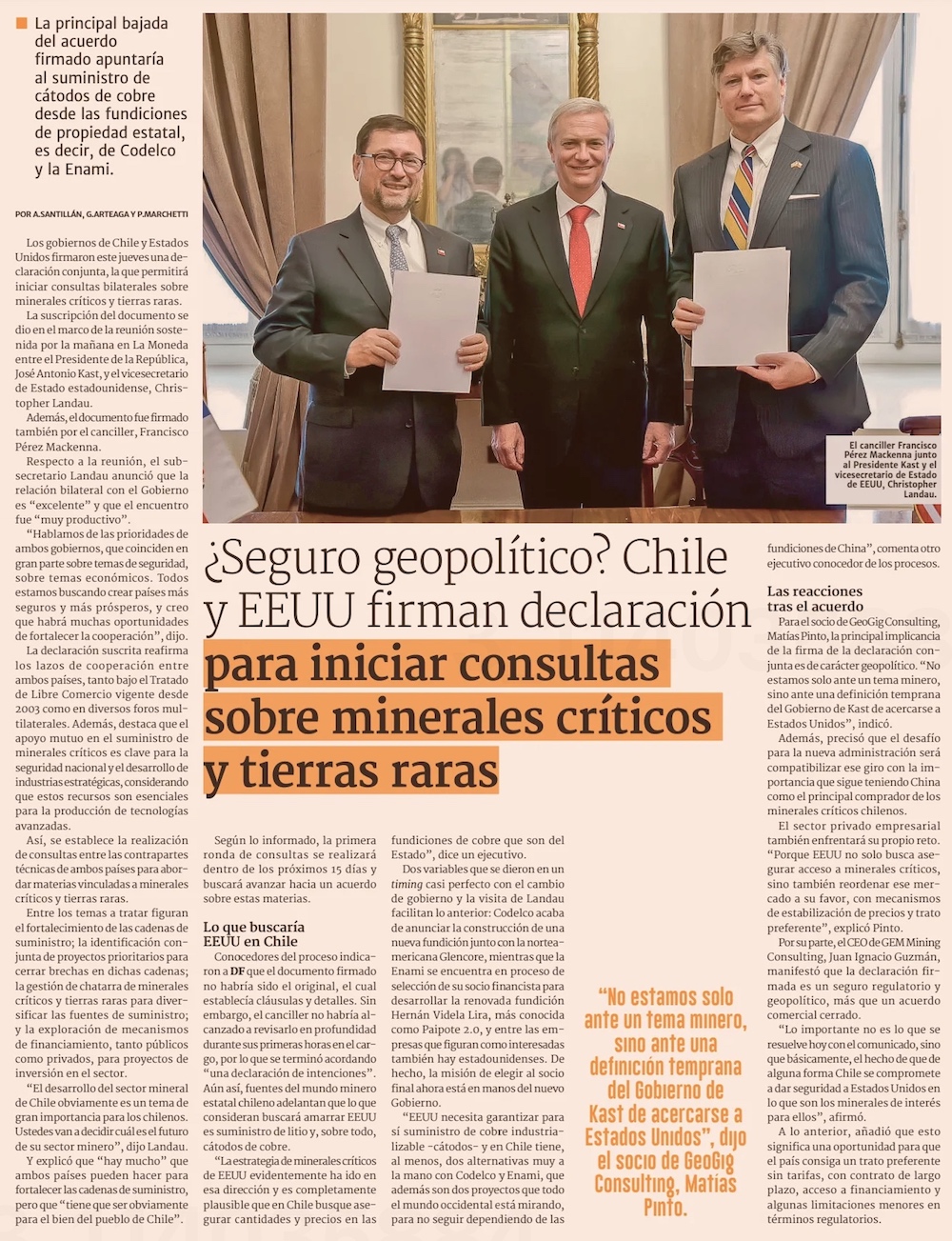 Chile y EE.UU. inician conversaciones para un posible acuerdo por minerales críticos y tierras raras - (Pulso)