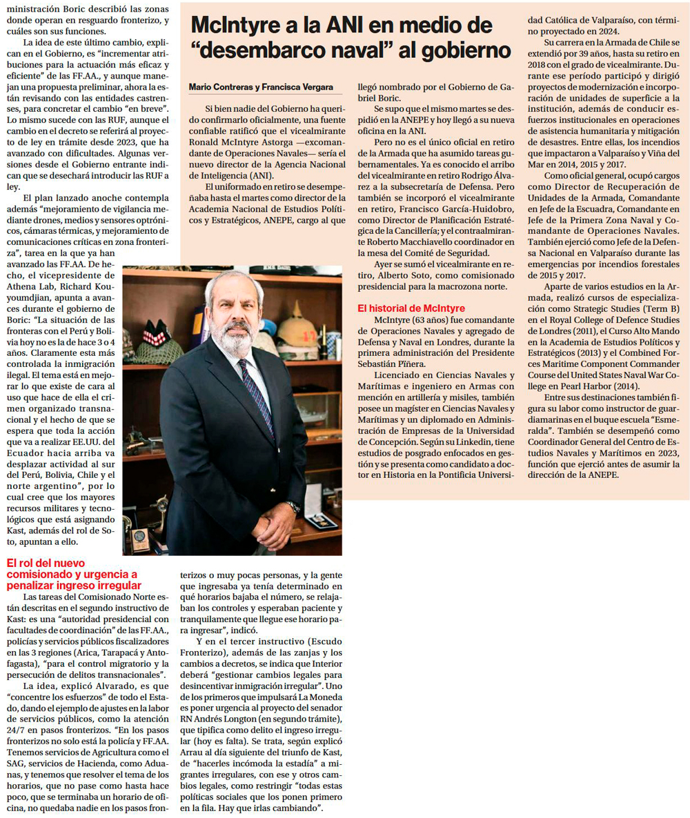 Construcción de zanja comienza la próxima semana y comisionado llega al norte - (El Mercurio de Santiago)