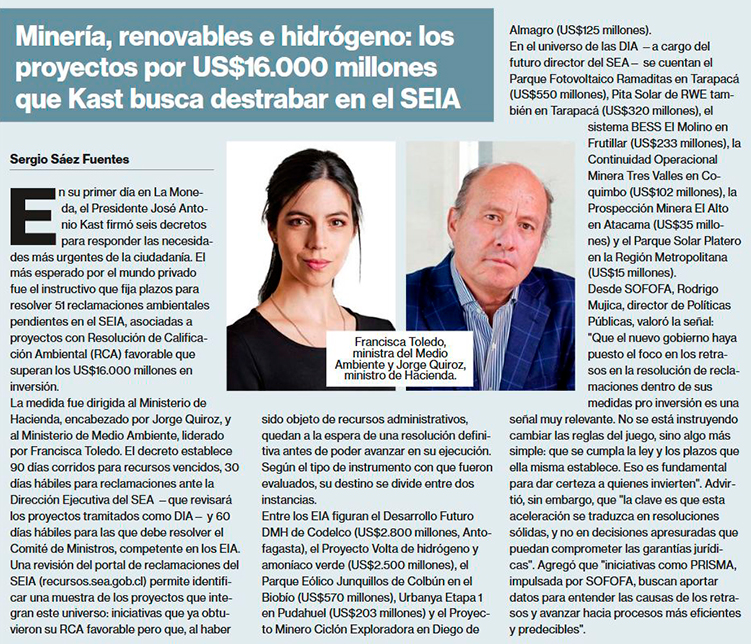Plan para destrabar inversiones por US$ 16.300 millones beneficia 42 proyectos con foco en minería y energía - (Diario Financiero)
