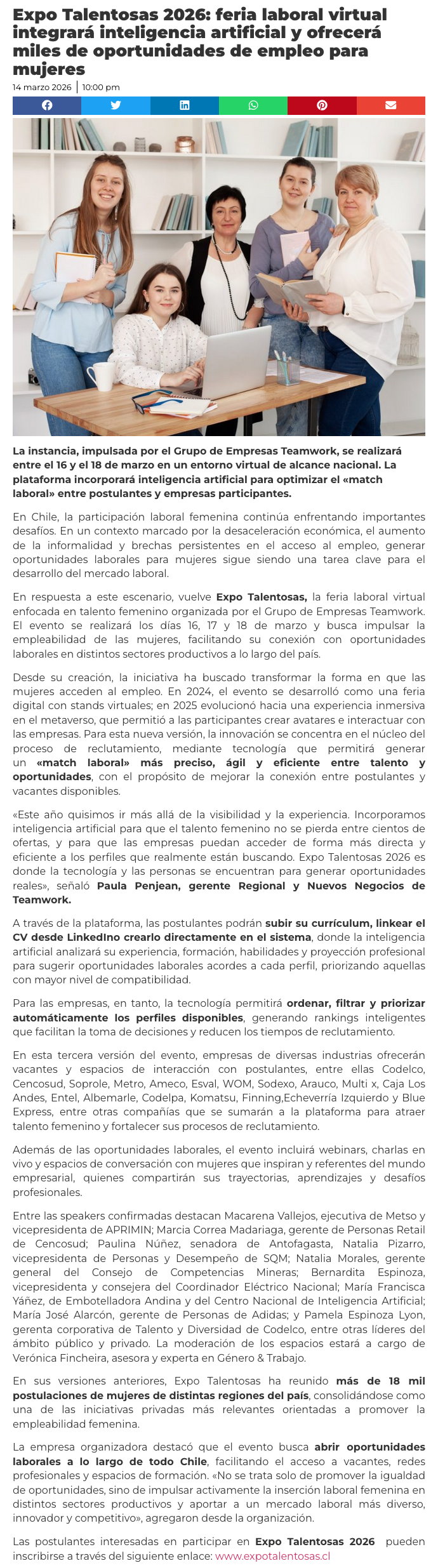 Expo Talentosas 2026: feria laboral virtual ofrecerá miles de oportunidades de empleo para mujeres - (elmauleinforma.cl)
