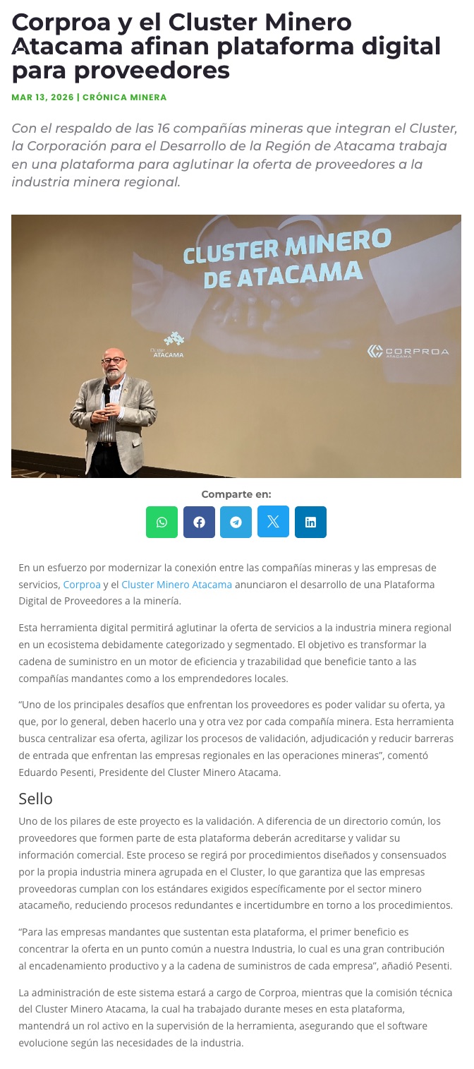 Impulsan plataforma digital para conectar proveedores con la minería - (El Diario de Atacama)