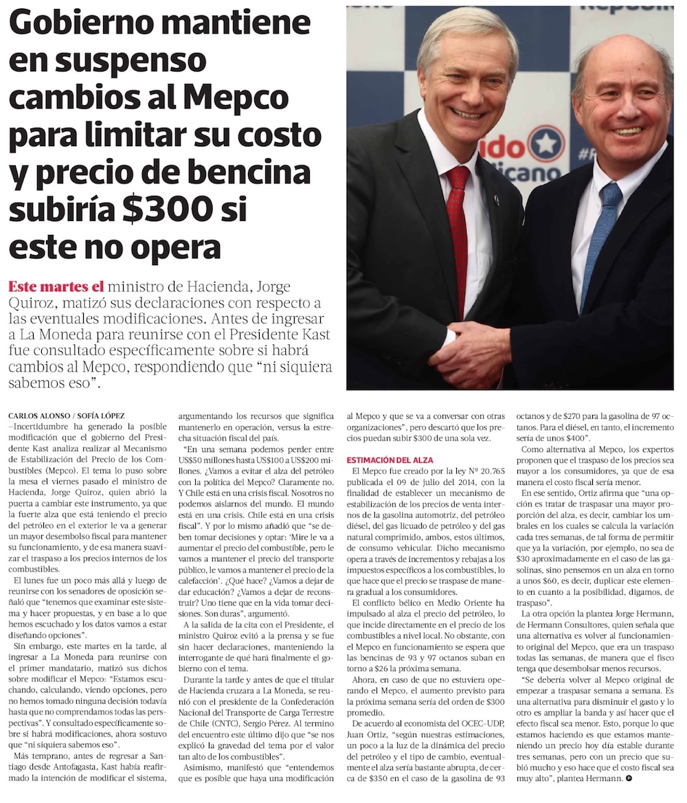 El dilema de Quiroz: bencinas tienen un desfase de $350 por litro con el precio real - (La Segunda)