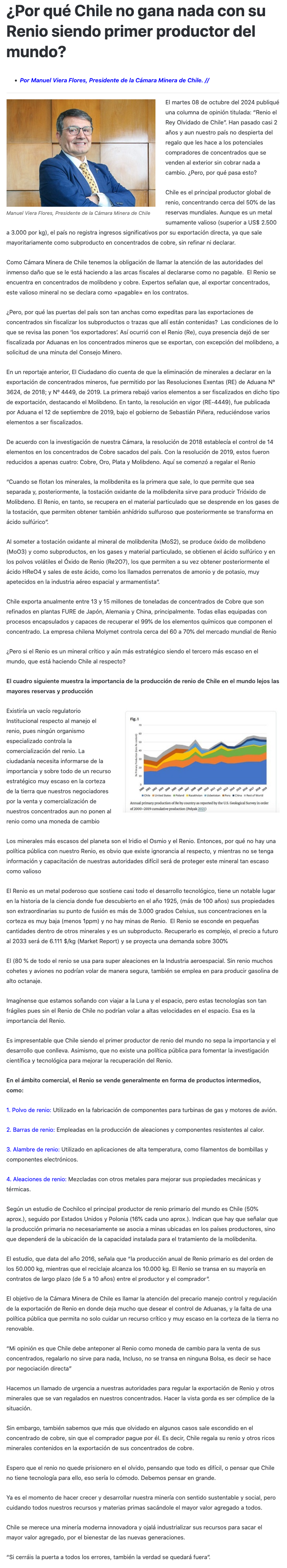 ¿Por qué Chile no gana nada con su Renio siendo primer productor del mundo? - (portalinnova.cl)