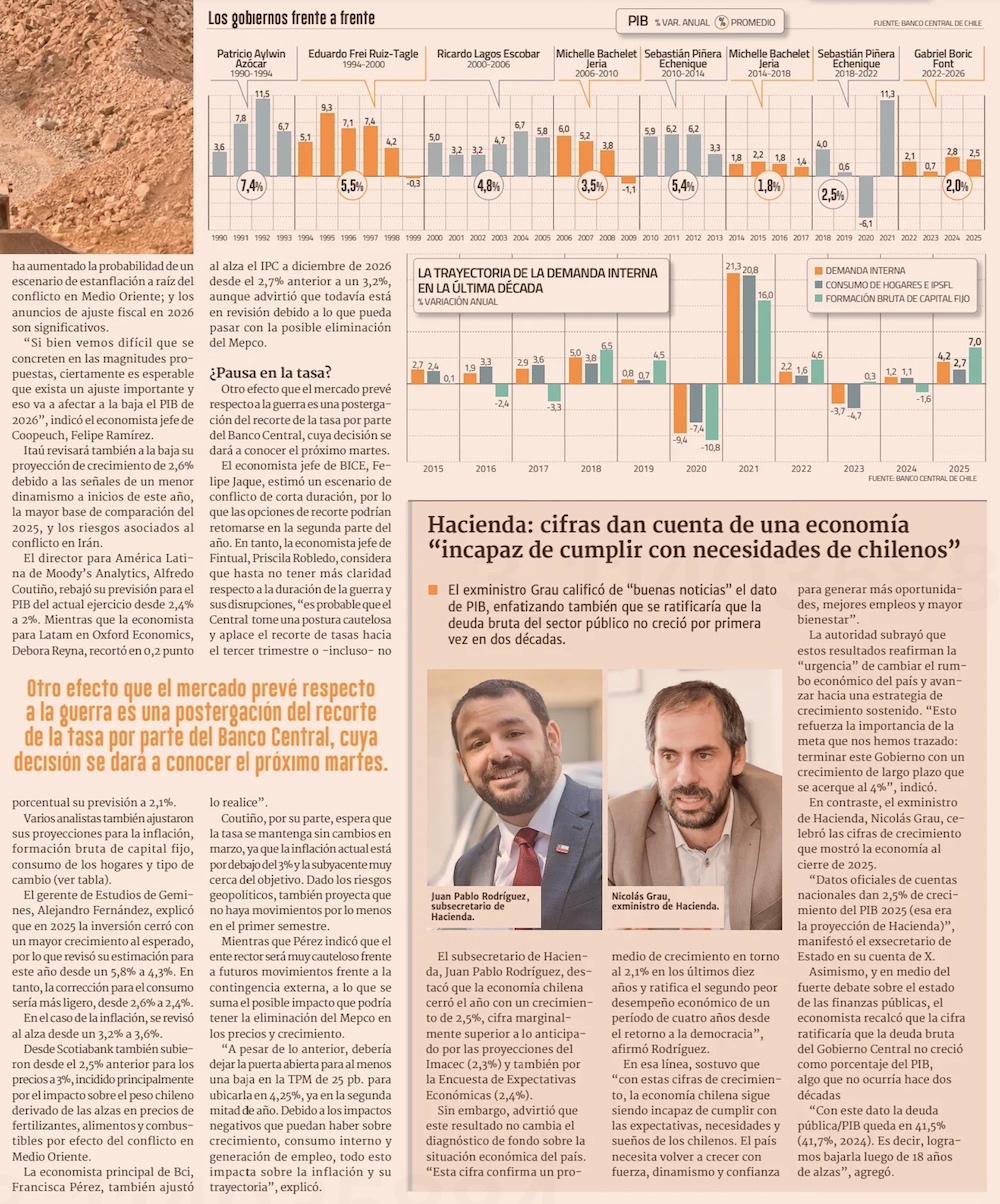 Economía chilena crece 2,5% en 2025 y gobierno de Boric cierra con alza promedio de 2% - (Pulso)