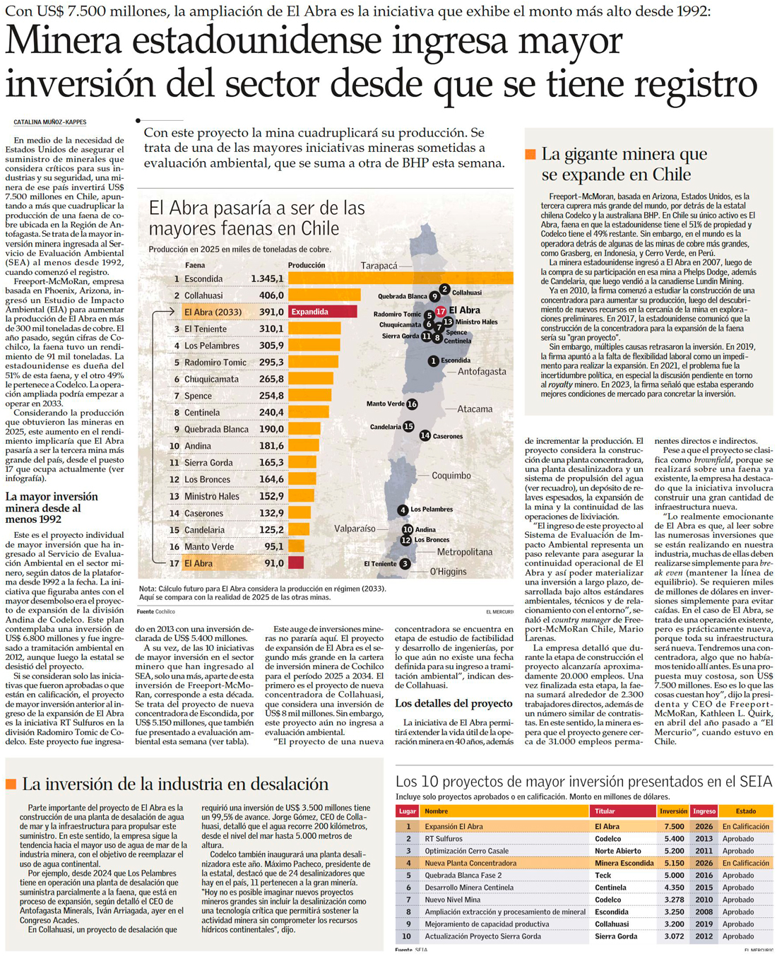 El Abra presentará hoy su megaproyecto tras cita con biministro Mas - (El Mercurio de Antofagasta)