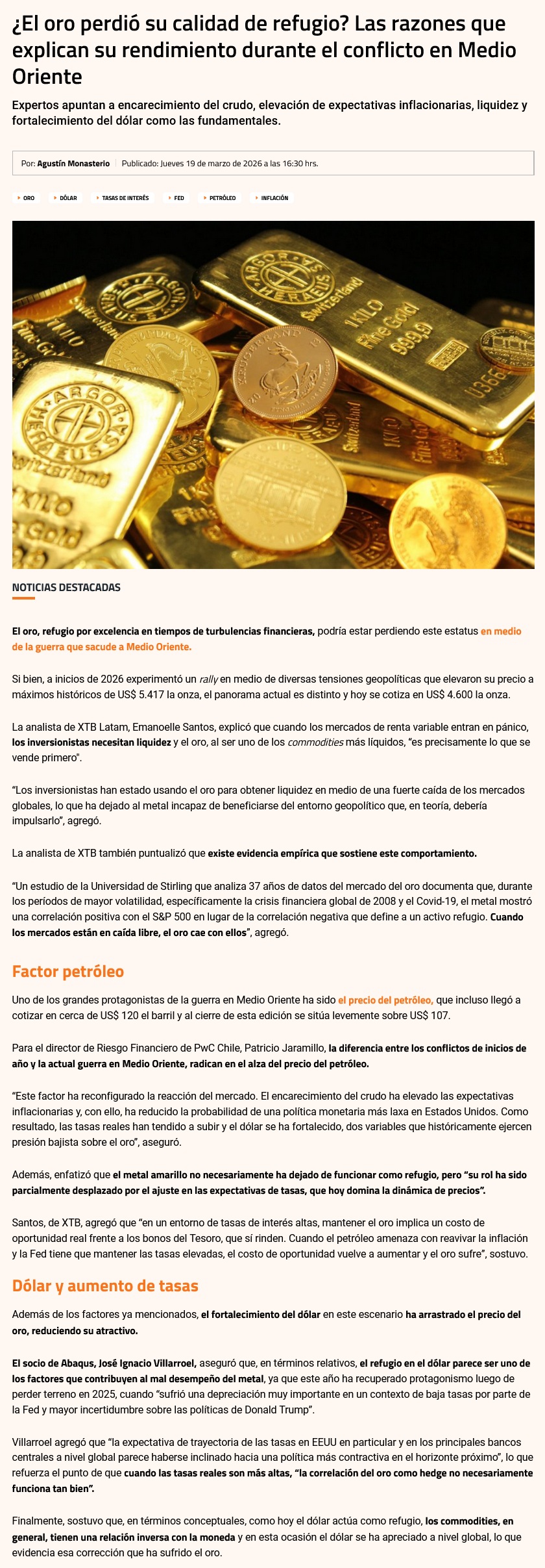 Bolsas y metales "refugio" caen por decisión de la Fed e incertidumbre por la guerra - (El Mercurio de Santiago)