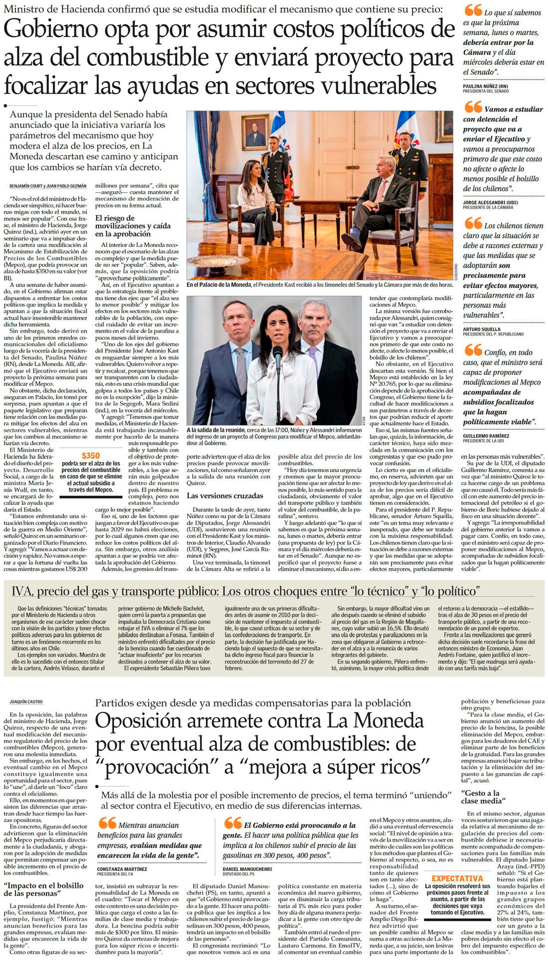 Quiroz anticipa traspaso más rápido a las gasolinas de alzas del petróleo y enfatiza ayuda a más vulnerables - (El Mercurio de Santiago)
