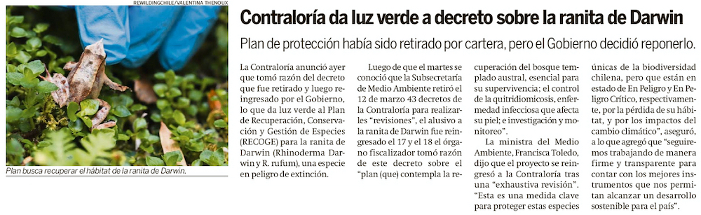 Medio Ambiente reingresa decreto sobre ranitas de Darwin y Contraloría toma razón - (Diario Financiero)