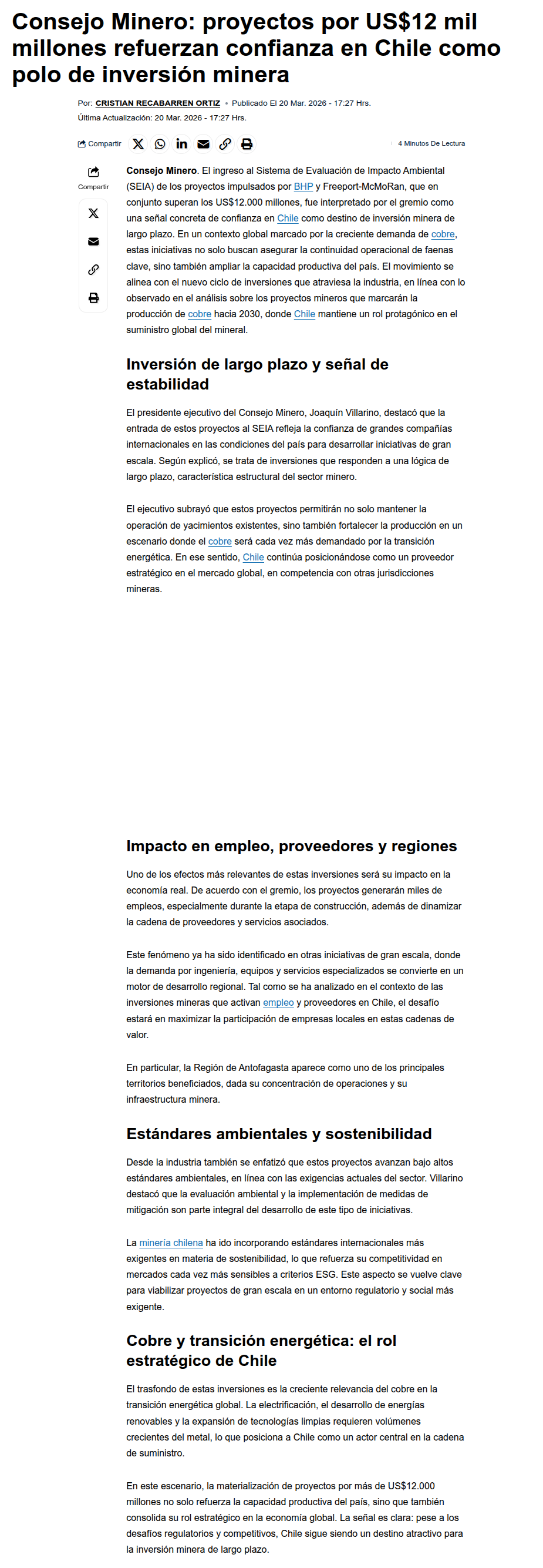 Inyección de confianza: US$12.500 millones en proyectos mineros en solo tres días - (eldiariodesantiago.cl)