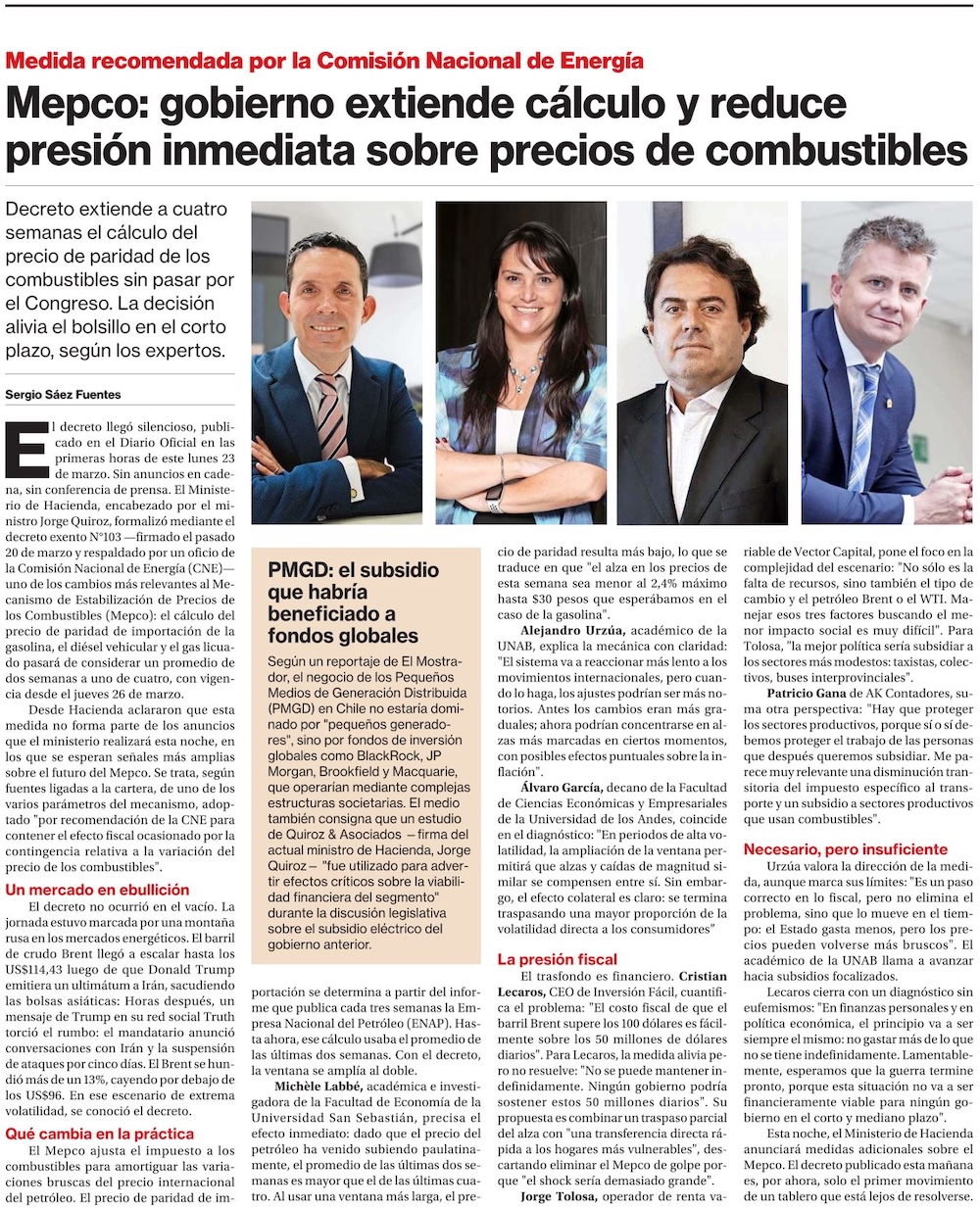Precios de las gasolinas y del diésel sufrirán el mayor aumento en 46 años tras cambios en sistema de estabilización - (El Mercurio de Santiago)