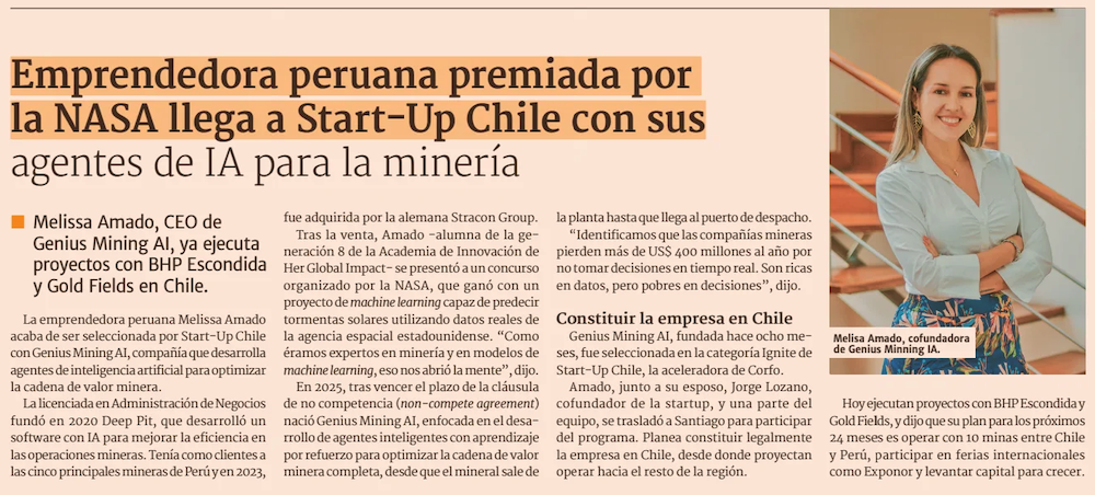 Emprendedora peruana premiada por la NASA llega a Start-Up Chile con sus agentes de IA minera - (DF Online)