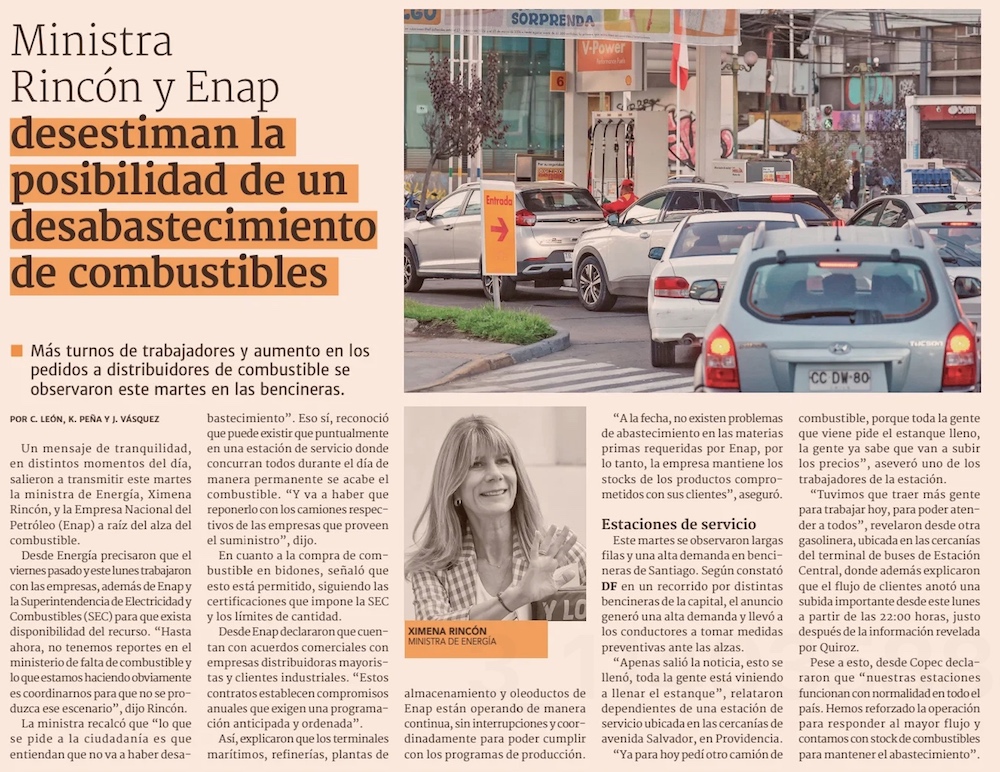 Enap descarta falta de stock de combustibles: “No existen problemas de abastecimiento” - (Pulso)