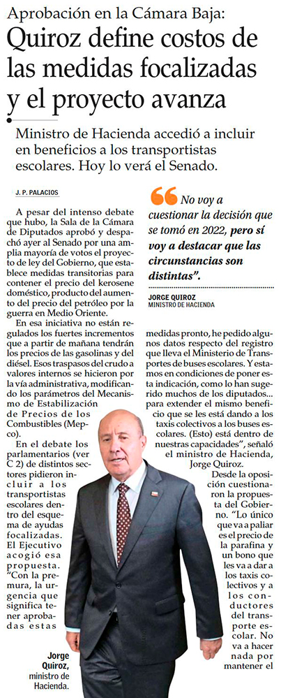 Cámara aprueba proyecto de combustibles en tenso debut legislativo de Quiroz - (La Tercera)