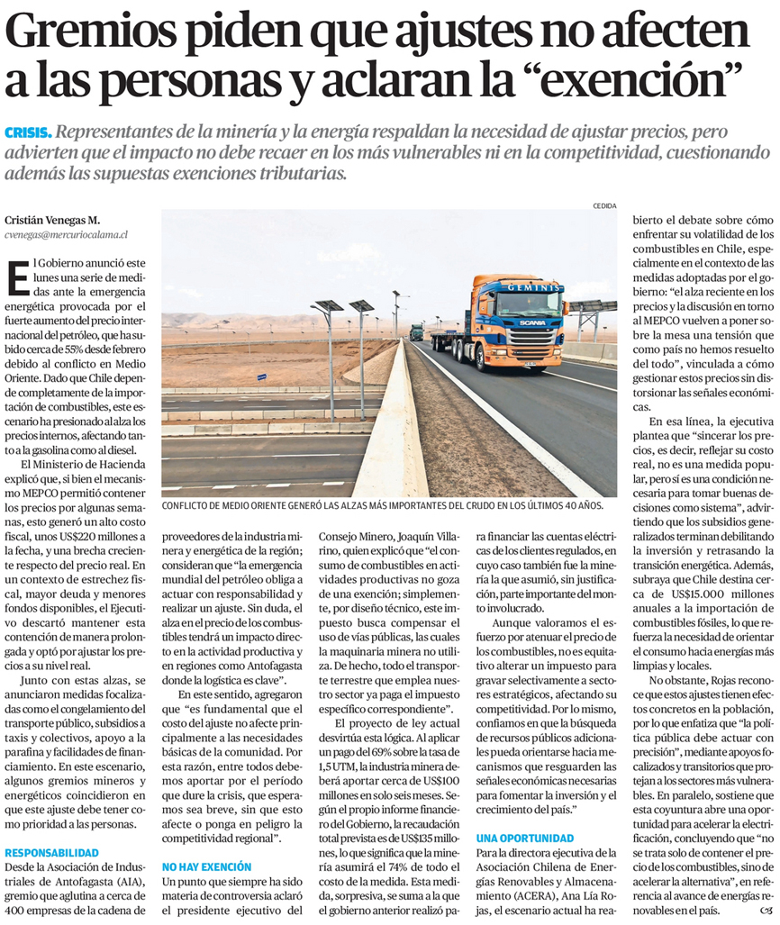 Gremios piden que ajustes no afecten a las personas y aclaran la "exención" - (El Mercurio de Calama)
