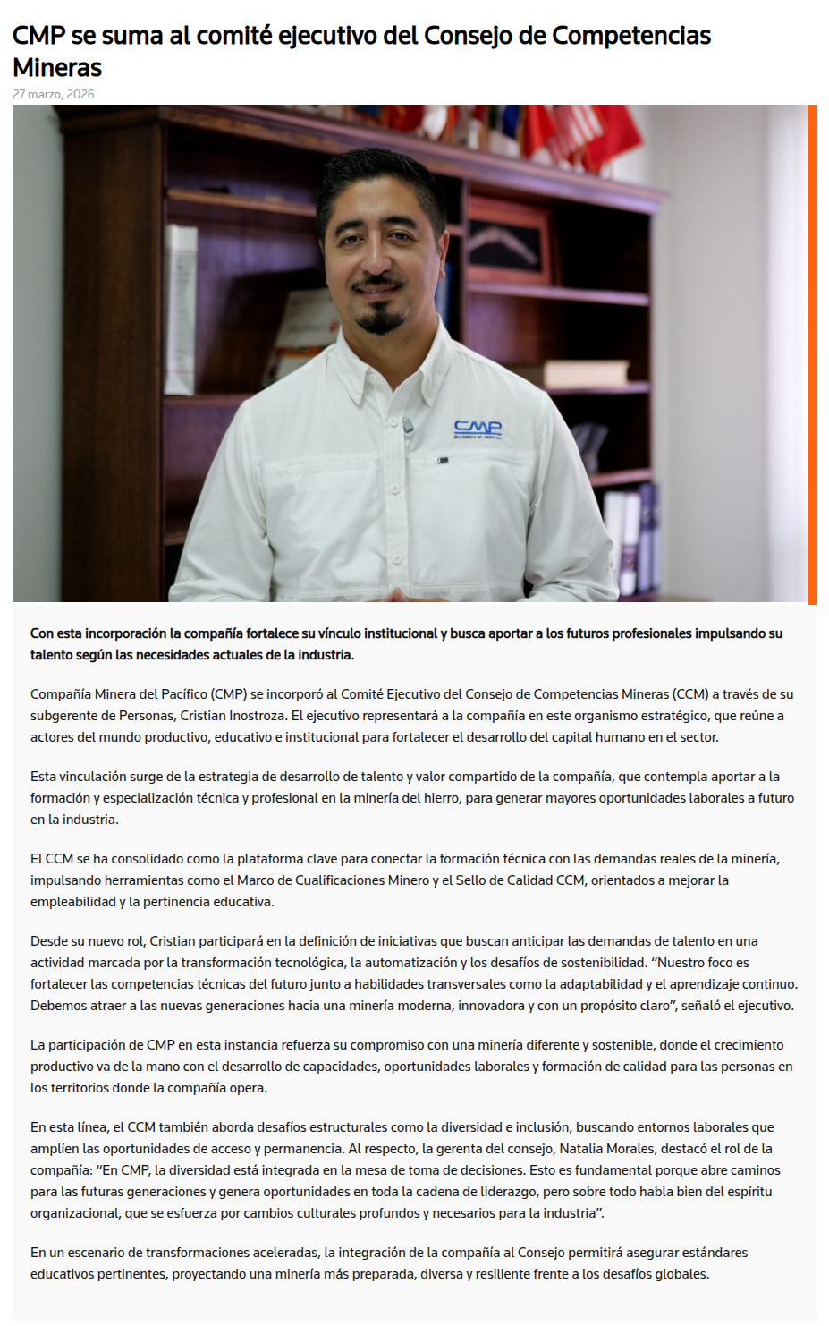 CMP se suma al comité ejecutivo del Consejo de Competencias Mineras - (portalminero)
