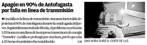 Falla dejó el 90% de Antofagasta sin energía - (Estrella de Antofagasta)