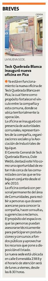Teck Quebrada Blanca inaugura oficina en la comuna de Pica - (El Longino de Iquique)