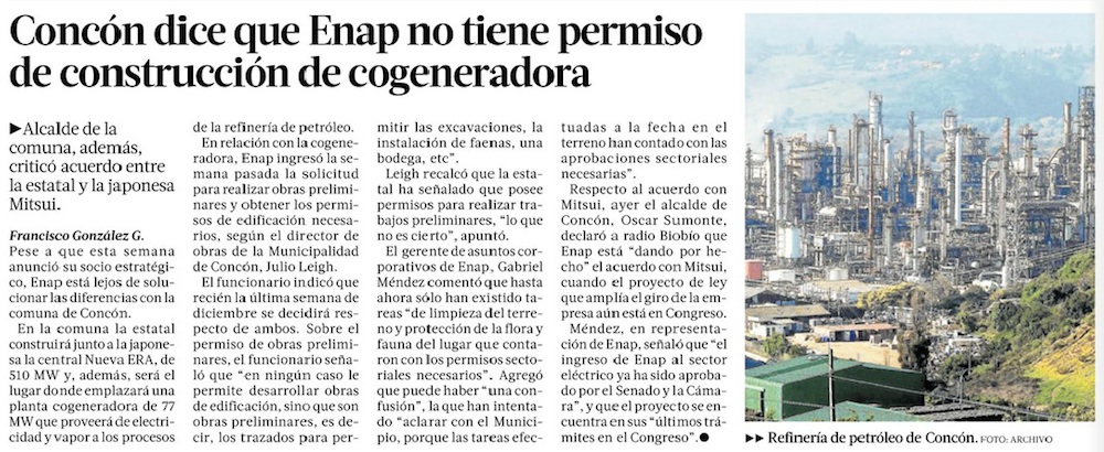 Alcalde de Concón critica alianza de ENAP y Mitsui para proyectos de generación eléctrica - (biobiochile online)