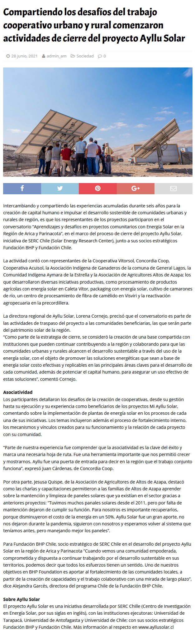 Ayllu Solar se despide dejando un legado sostenible urbano y rural en Arica - (agendasustentable.cl)
