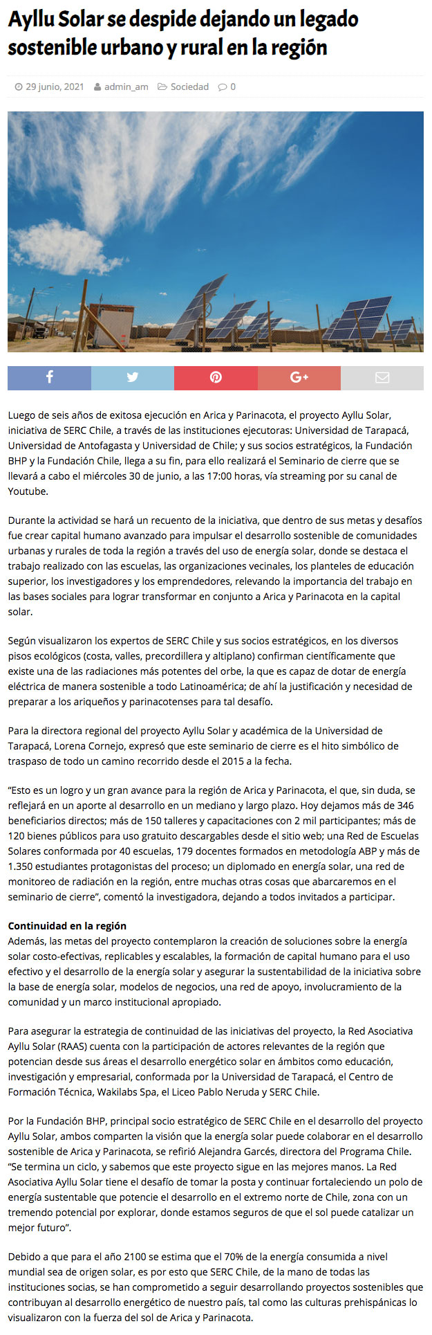 Ayllu Solar se despide dejando un legado sostenible urbano y rural en Arica - (agendasustentable.cl)