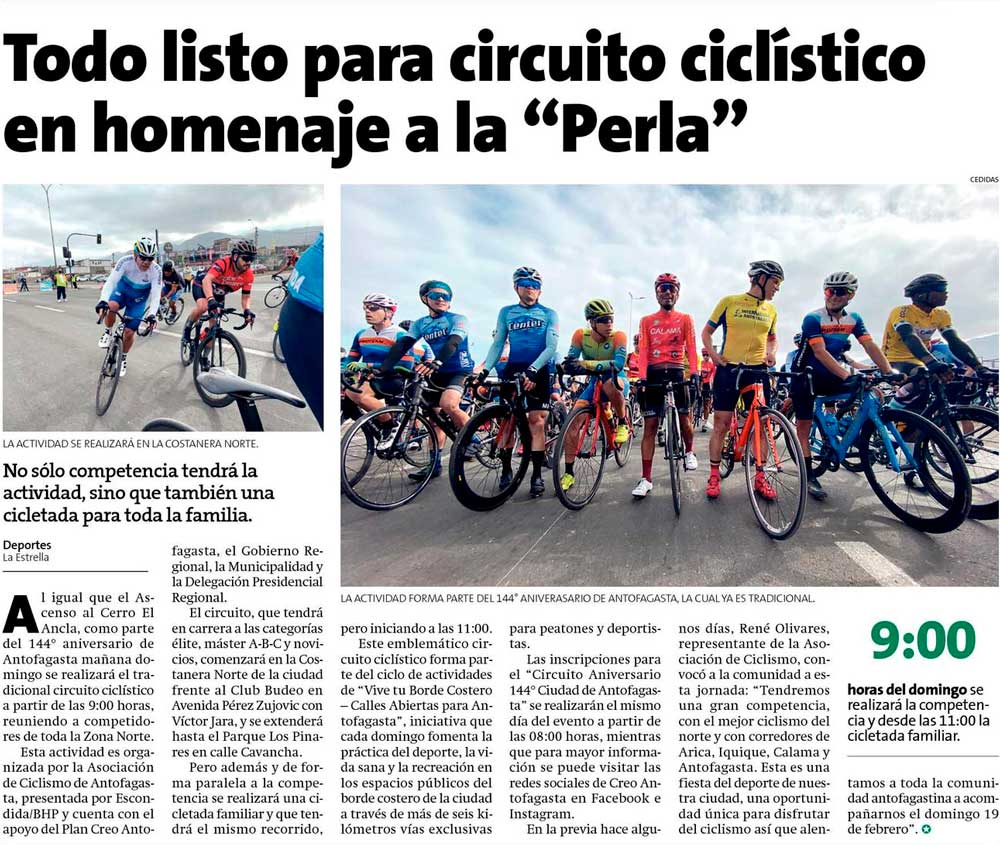 Todo listo para circuito ciclístico en homenaje a la "Perla" - (Estrella de Antofagasta)