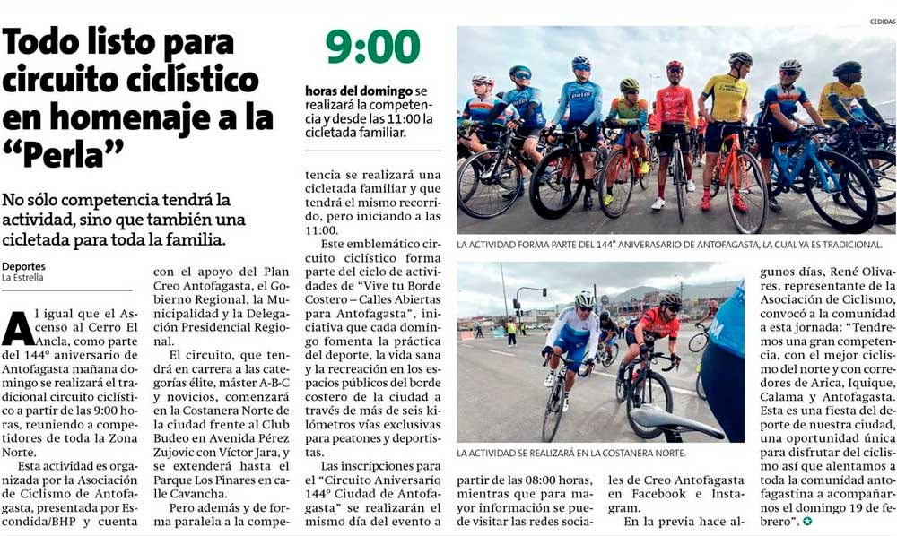 Todo listo para circuito ciclístico en homenaje a la "Perla" - (Estrella de Antofagasta)