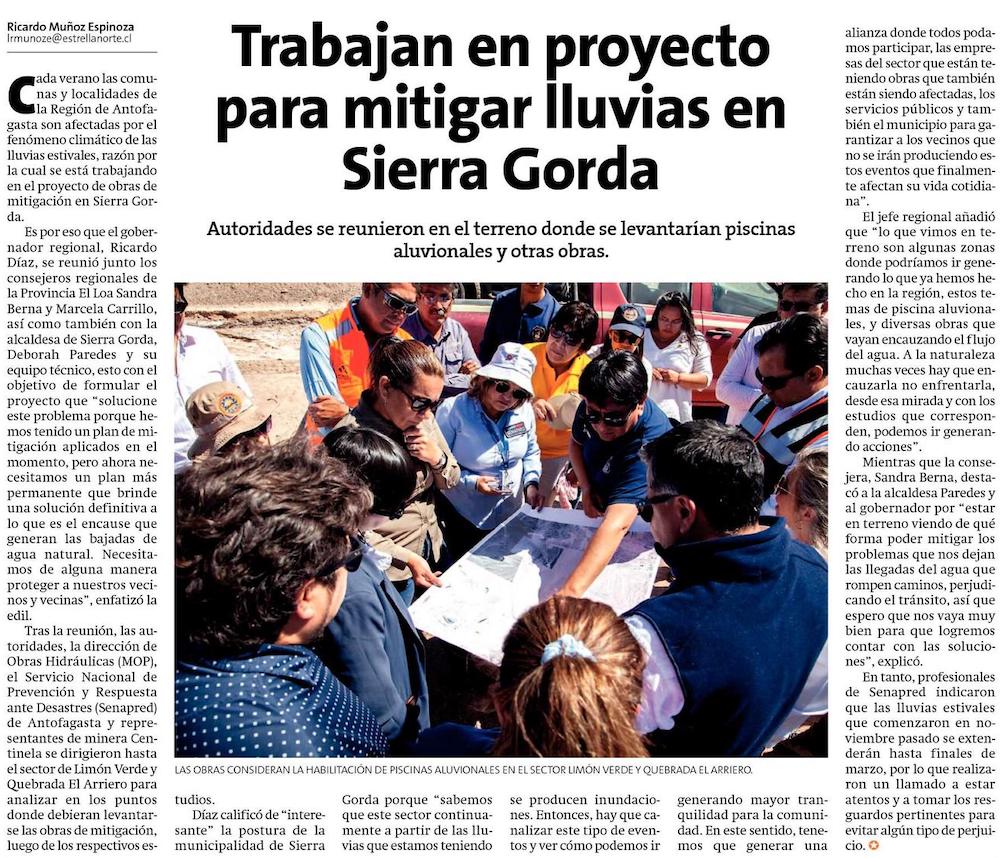 Autoridades analizan obras de mitigación ante la ocurrencia de lluvias en S. Gorda - (El Mercurio de Antofagasta)