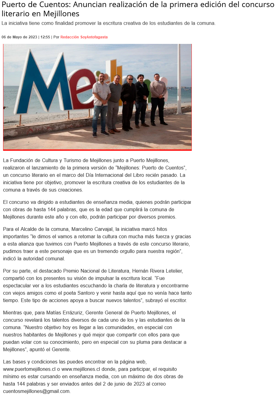 Puerto Mejillones junto a la Fundación de Cultura y Turismo lanzaron el Concurso Literario, Mejillones: Puerto de Cuentos - (diarioangamos)