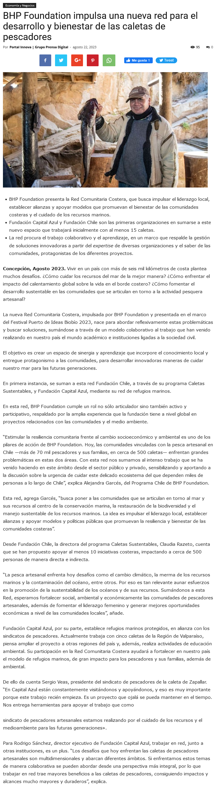 BHP Foundation impulsa una nueva red para el desarrollo y bienestar de las caletas de pescadores - (diariofutrono.cl)