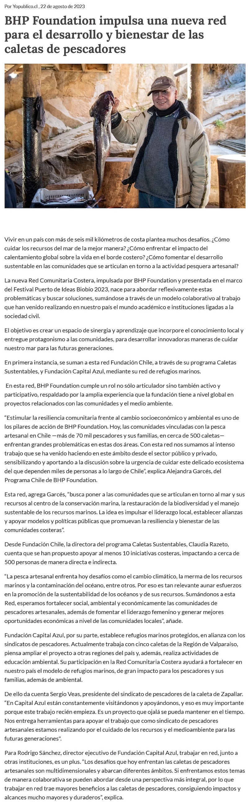 BHP Foundation impulsa una nueva red para el desarrollo y bienestar de las caletas de pescadores - (portalinnova.cl)